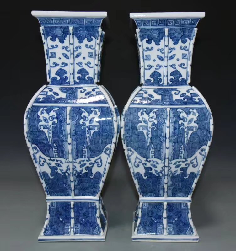 骊龙艺术馆每日鉴赏|清乾隆青花夔龙纹出戟方尊(一对)